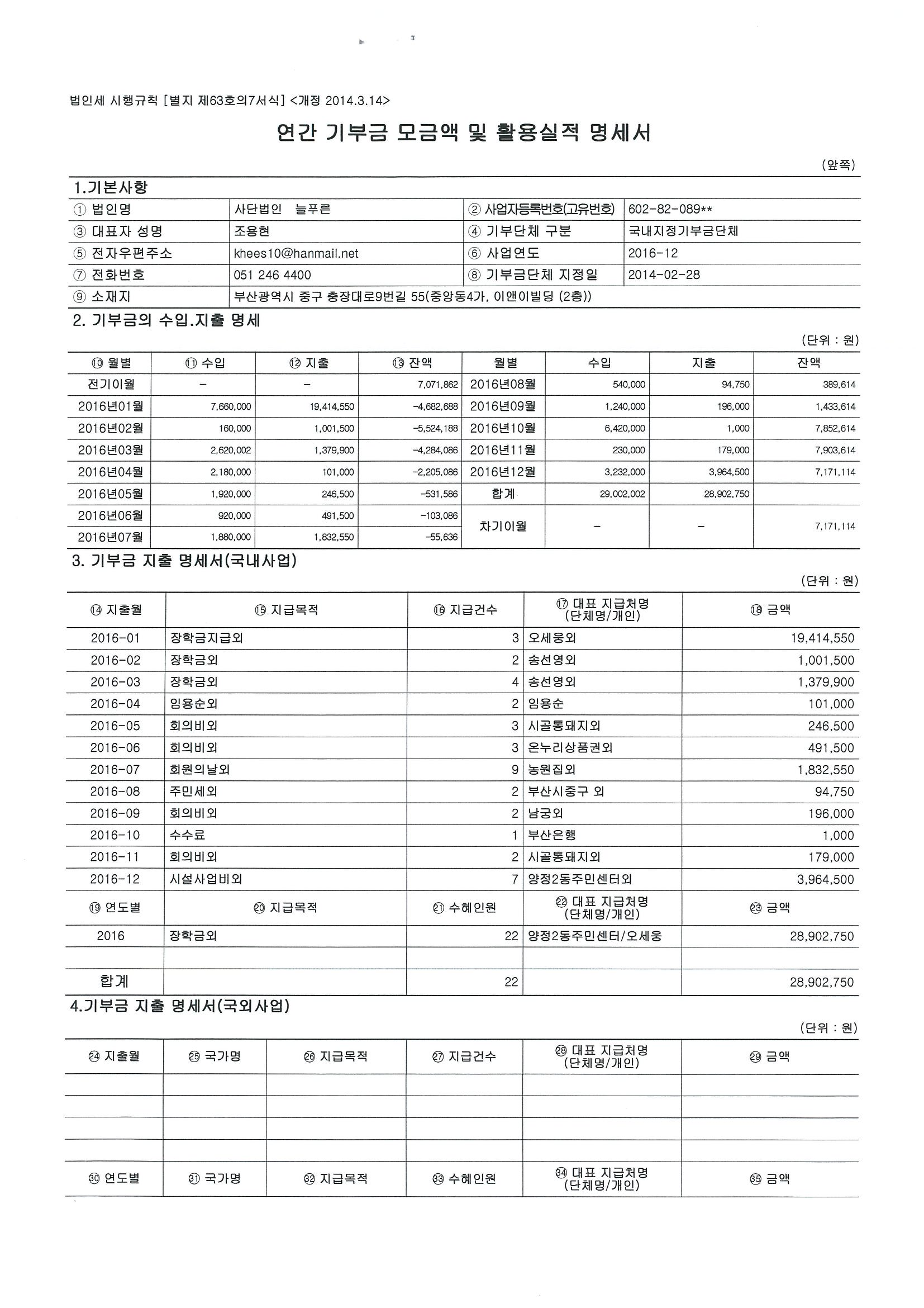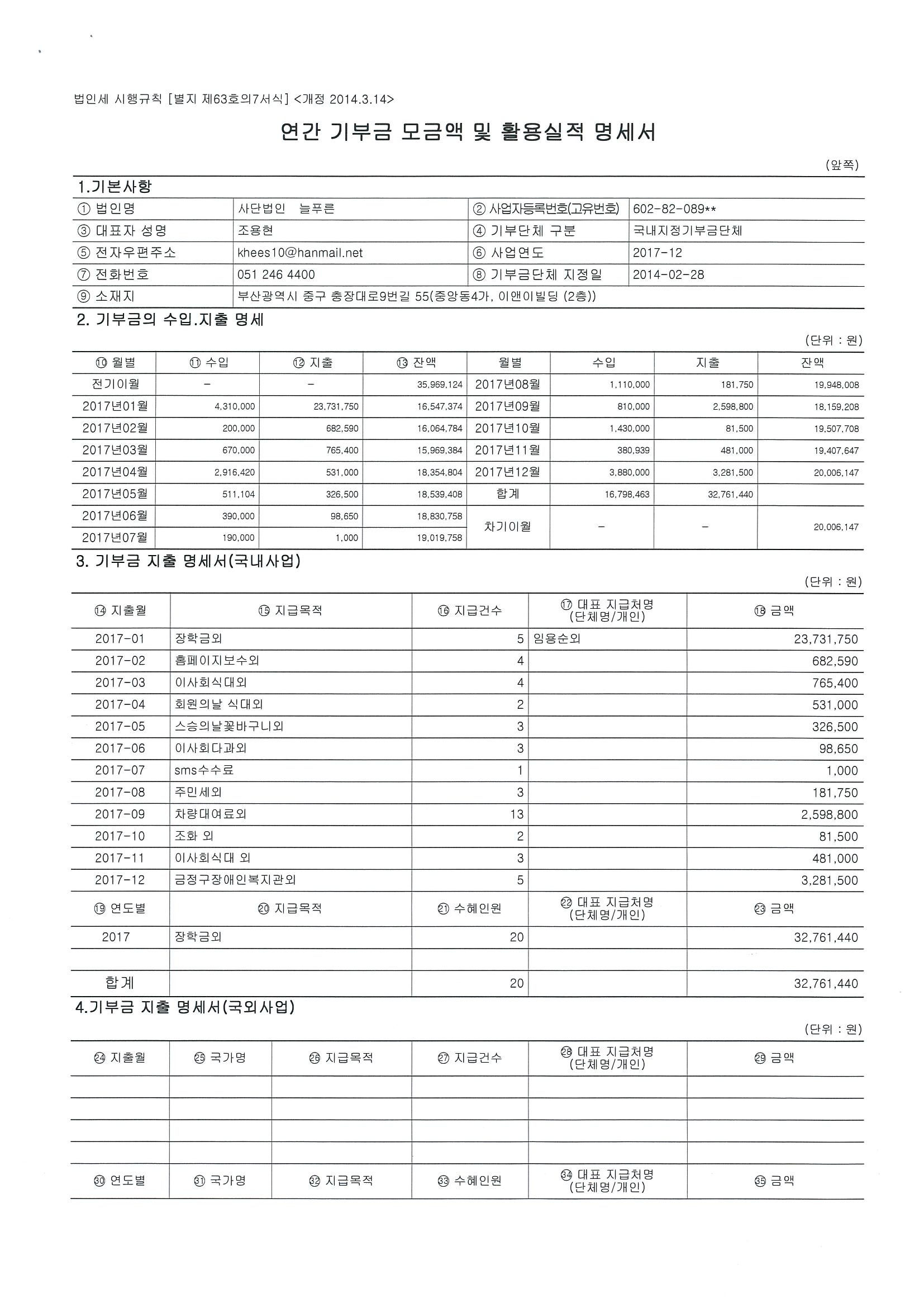 [공지] 기부금 모금액 및 활용실적명세서(2016년, 2017년) 관리자2018.04.3033312 첨부파일 untitled.png , untitled2.png 기부금 모금액 및 활용실적명세서(2016년, 2017년) 목록 이전글(사)늘푸른 2018년 정기총회 개최 알림 다음글제11회 늘푸른장학생 신청 안내